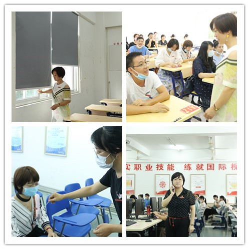 此次演练采取实地演练方式,分别为:员工报到场景,员工在教室上课场景、员工在实训室上课场景,员工宿舍场景,涉及员工个人防护、体温检测、转移临时观察区、发热情况紧急处理等多个流程。