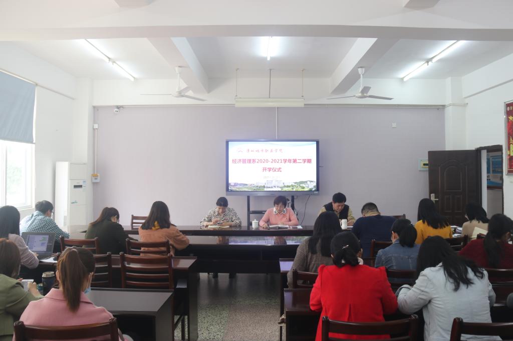 3月1日下午,经济管理系召开2020-2021学年第二学期开学式,系党总支书记吴李霞、系主任张少华,系党总支副书记洪菁和全体教职员工参加了会议。会议由系党总支书记吴李霞主持。