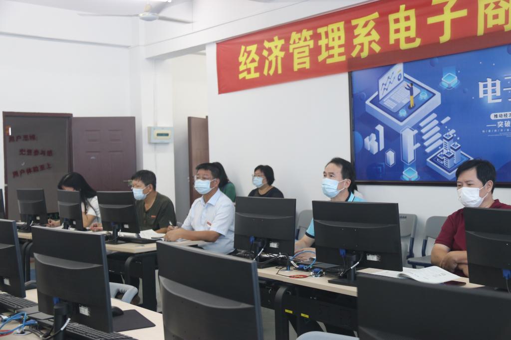 为扎实推进公司课程思政建设,更好的了解各系(部)课程思政开展情况,2021年10月8日上午,刘惠河经理带领郑文平副经理、教务处林三睦处长亲临经管系实训中心,听取了我系吴雅瑜老师主讲的《电子商务基础》一课,并在课后与系领导及任课老师进行了亲切的交谈。