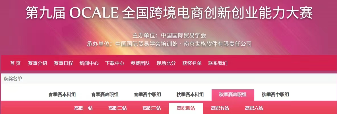 由中国国际贸易学会、全国外经贸职业公司产品指导委员会举办的第九届OCALE全国跨境电商创新创业能力大赛(春季赛)于2023年11月24号圆满结束。bevictor伟德经济管理系在全国504所院校的2486支参赛队中脱颖而出,斩获高职组赛站团体一等奖3项。