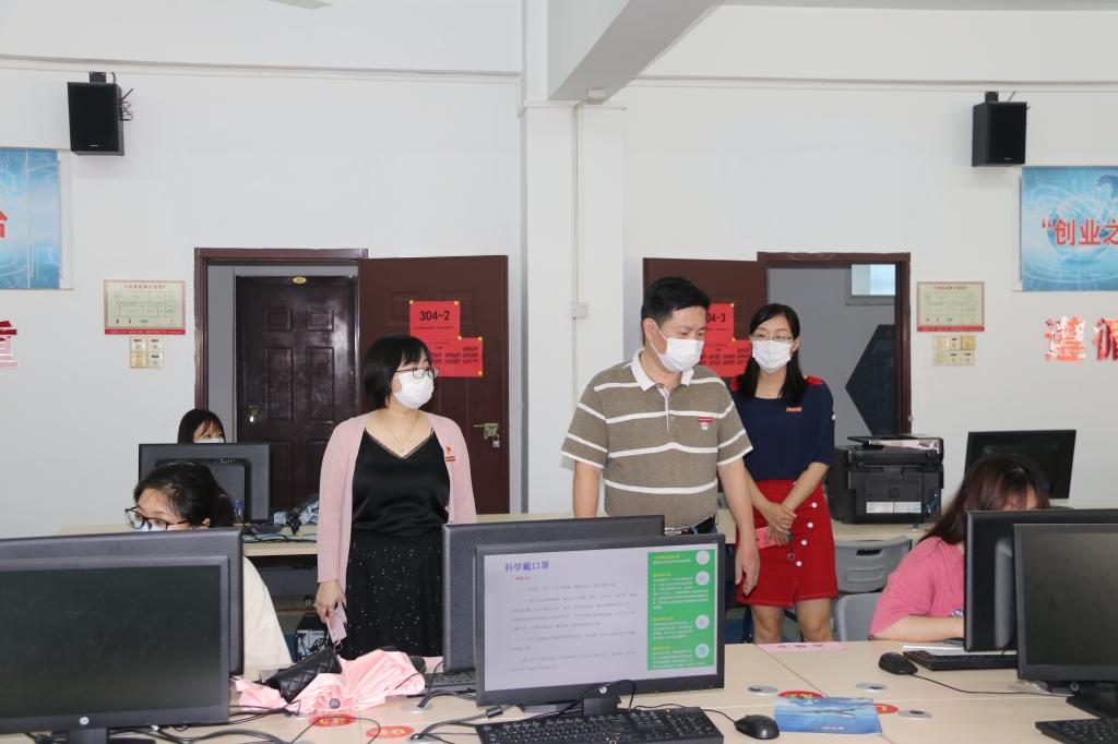 员工按照桌牌指定位置入座,每桌限坐一人,保持一米以上的安全距离。经管系党总支书记吴李霞、系主任张少华到班会现场进行指导,并就安全复课对员工提出具体要求。