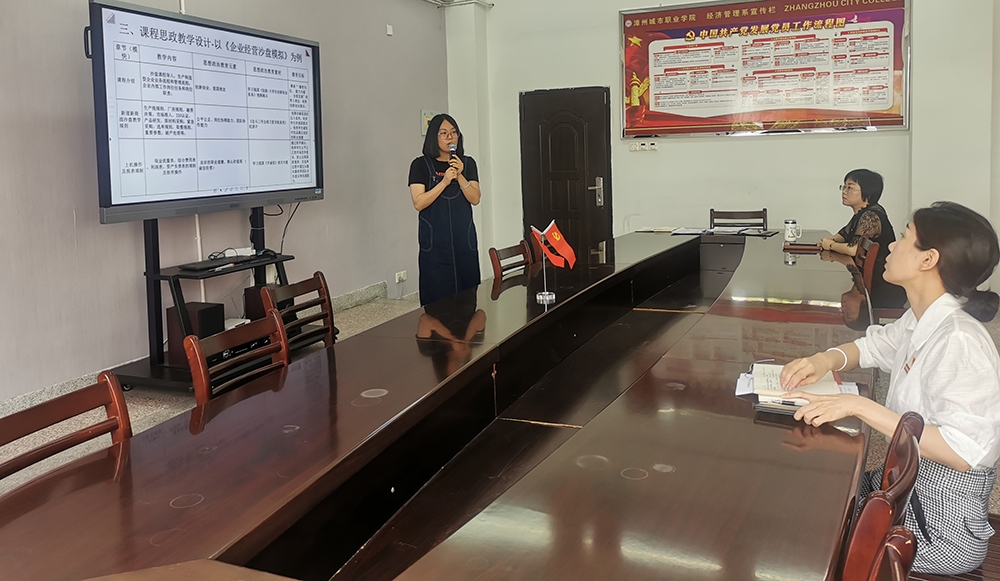为扎实深入开展“课程思政”专题学习研讨活动,5月26日,我系在会议室开展了第三次系部集中交流研讨活动。系党总支副书记洪菁、全系任课教师参加了本次课程思政研讨会,系党总支书记吴李霞主持会议。