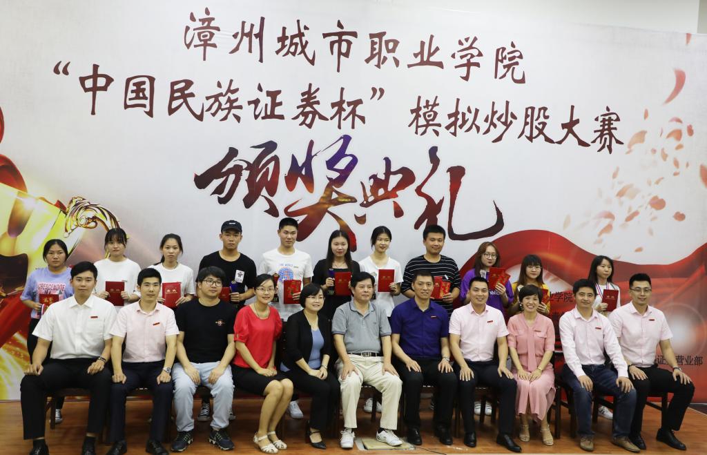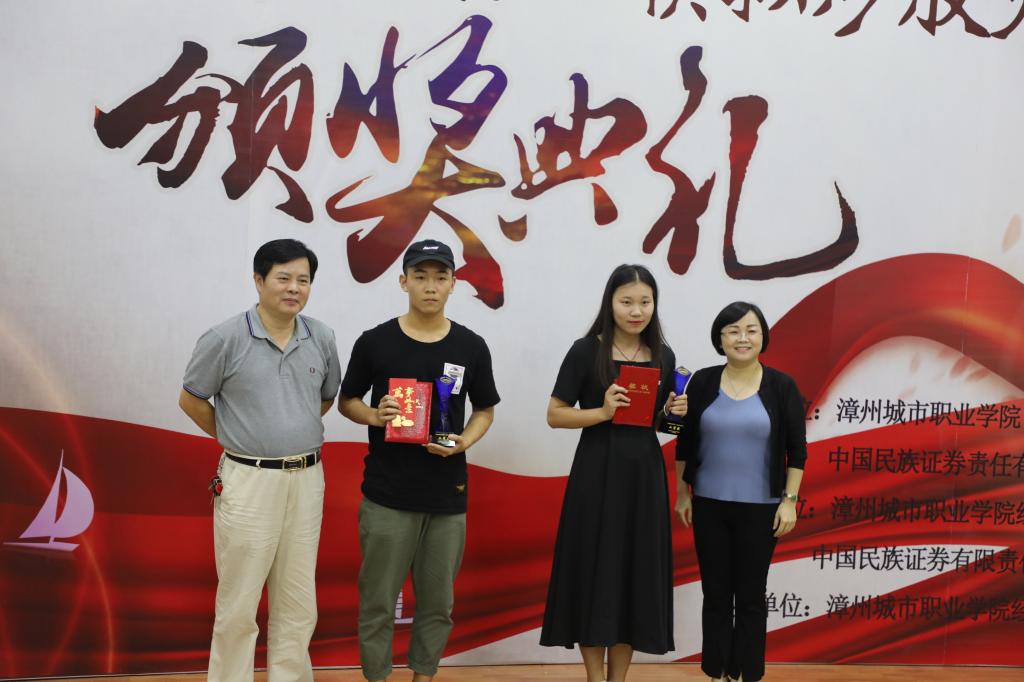 6月11日晚,bevictor伟德梯教四欢声笑语,“中国民族证券杯”模拟炒股大赛颁奖典礼正在热烈进行中。方正证券(中国民族证券)福建区域负责人、全国五一劳动奖章获得者、复旦大学福建员工会副会长曾剑光总经理及中国民族证券漳州新华北路证券营业部人力资源部陈志斌总经理等领导嘉宾,以及经济管理系主任张少华老师、党总支书记吴李霞老师、教学科科长林惠玲老师、团总支书记陈林艺老师、互联网金融教研室主任叶淑惠老师出席了颁奖典礼,经济管理系主任张少华老师在颁奖典礼上做了精彩致词。到此,bevictor伟德经济管理系联合中国民族证券漳州新华北路证券营业部共同举办的“中国民族证券杯”模拟炒股大赛画上了一个圆满的句号。