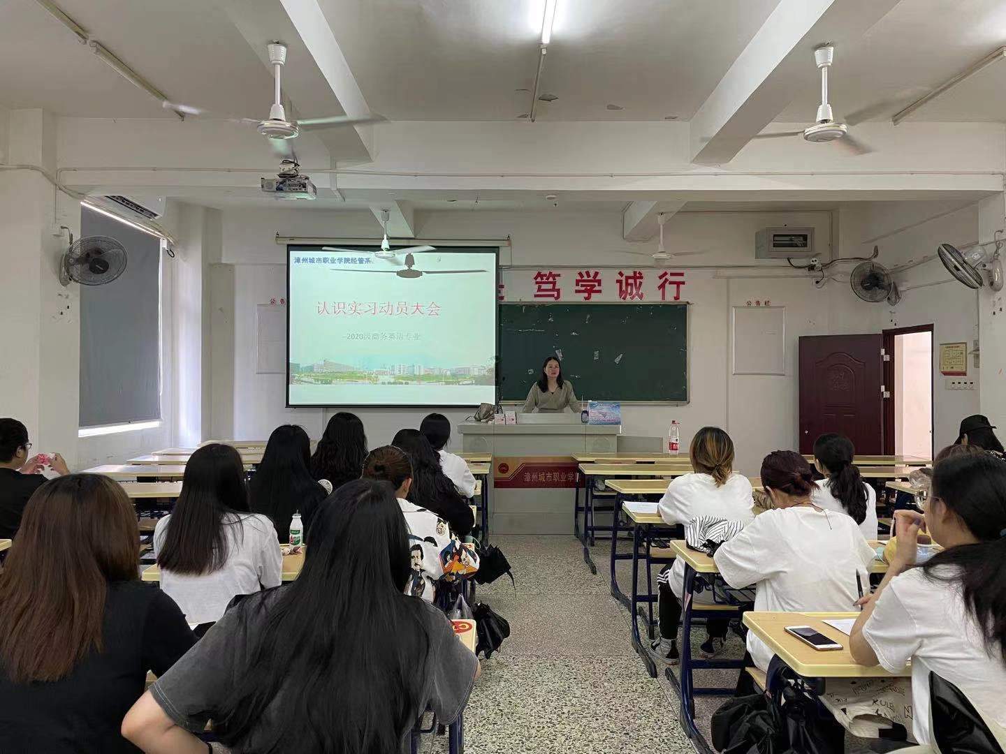 5月24日,商务英语专业带头人王雪群老师在博学楼教室召开实习动员会,全体2020级商英员工和专业指导老师参加了此次会议。会上,她强调员工们在实习期间要注意疫情防控,切实做好个人防护措施,注意交通安全;同时也详细阐述了本次认知实习的任务目标,确保本次实习安全顺利开展。