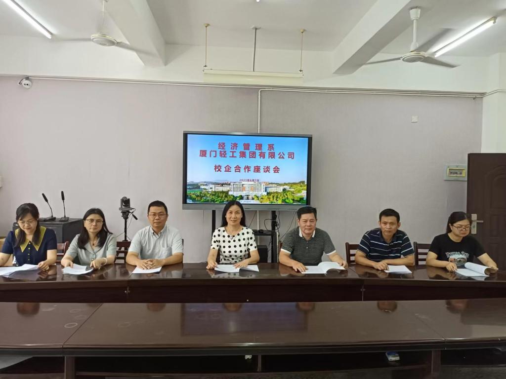 紧接着,厦门轻工集团有限公司代表围绕合作模式、实践教学、岗位设置和实习就业等基本情况做了详细介绍,双方就目前遇到的一些合作问题及未来合作方向等做了探讨交流。