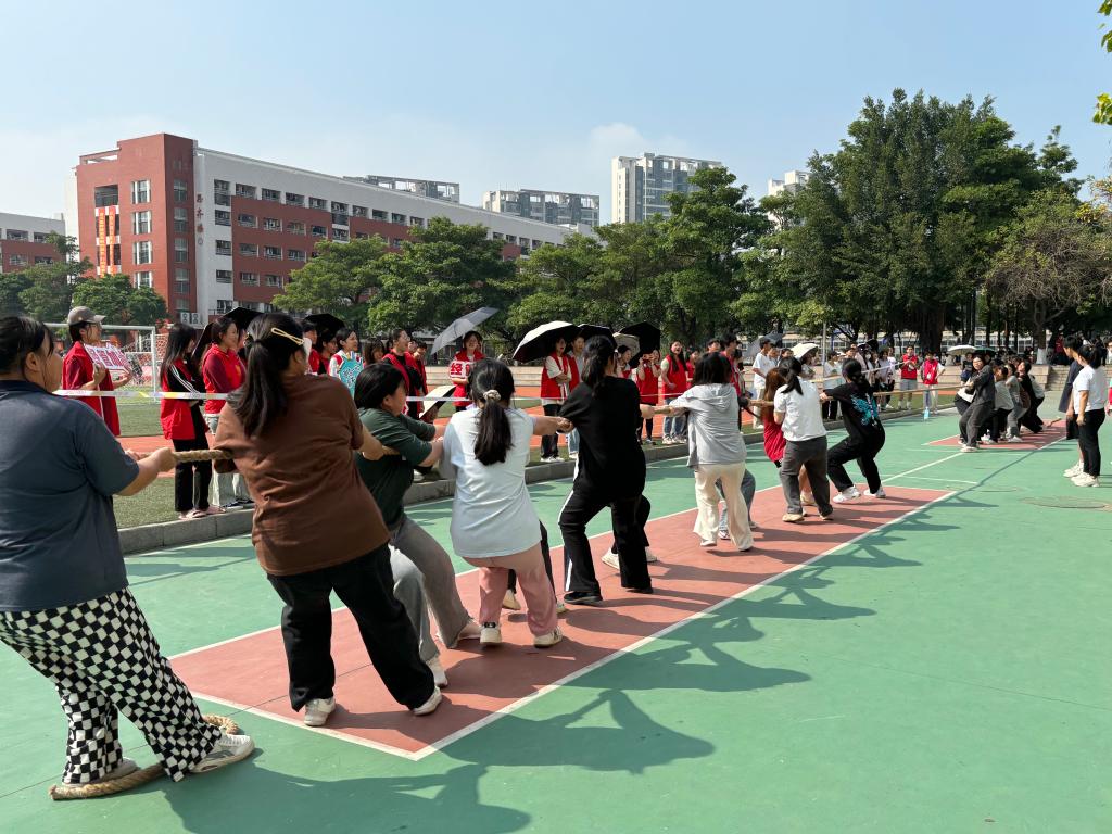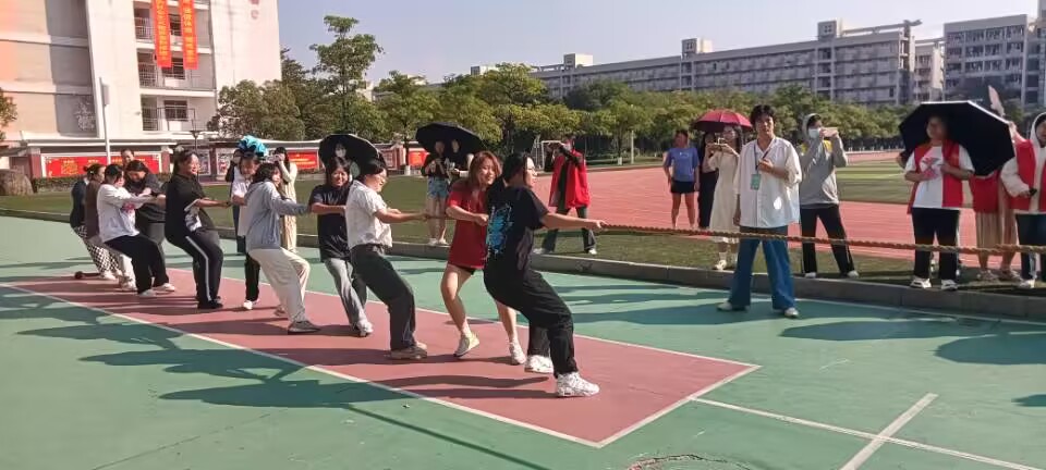 赛场上,随着哨声的响起,全场都沸腾了起来。参赛队员以默契的配合和高昂的士气全力以赴。她们齐心协力,鼓足干劲,紧握长绳,重心下移,倾全力于一身,为集体的荣誉拼尽全力。场外的啦啦队个个热情高涨,加油声、呐喊声此起彼伏,响彻赛场。