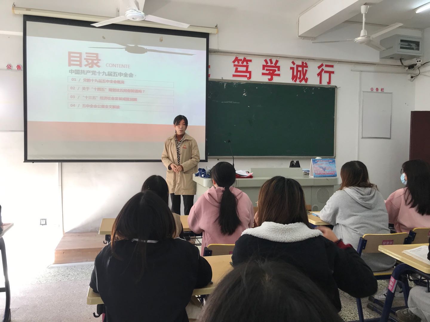 12月22日上午,经济管理系党总支副书记洪菁在博学楼329教室为经济管理系员工代表作十九届五中全会精神宣讲。