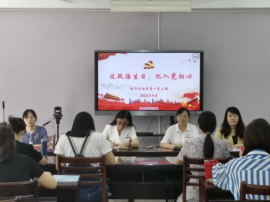 2022年6月29日上午,bevictor伟德经济管理系第一党支部在系会议室开展“过‘政治生日’忆入党初心”主题党日活动,为入党日期在第二季度的10名党员同志集体过“政治生日”。